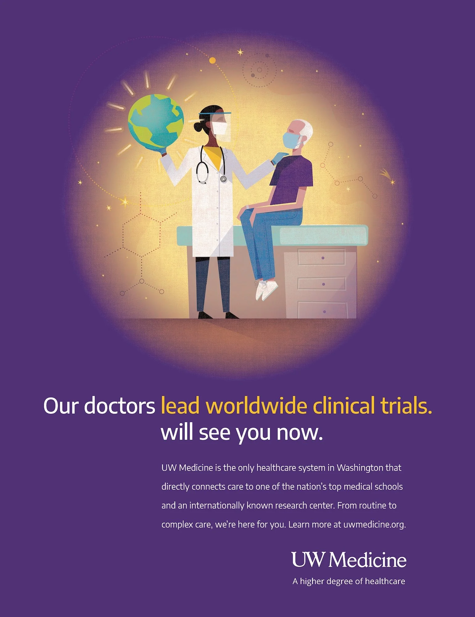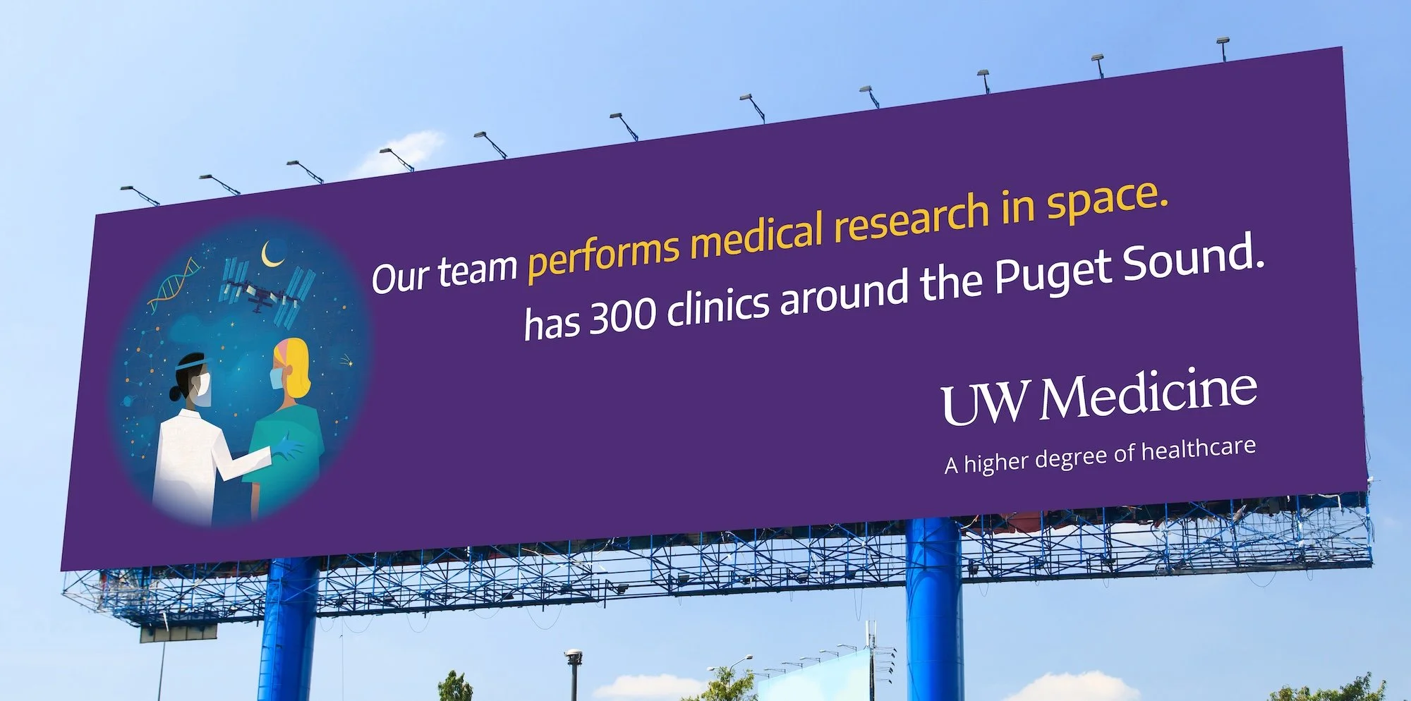 Many of the doctors who deliver care at UW Medicine also teach at UW’s medical school and lead major multinational research studies. Our split headline campaign lets people discover how that makes UW Medicine different.